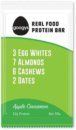 Googys are an Australian family-run business specialising in wholefood protein bars, smoothies, and pancake mixes made with the goodness of protein-rich egg whites. Building on the high bioavailability protein in egg whites, Googys take dried, pasteurized egg whites from free range eggs and add fruits, nuts, and other natural ingredients to create their real food protein bars, available in a host of yummy flavours like Coffee Cocoa and Apple Cinnamon.