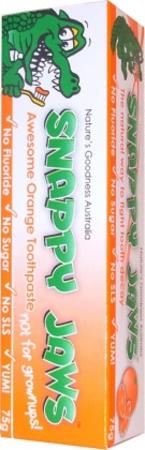 Snappy Jaws Toothpaste is specially formulated for kids. Containing no fluoride, no sugar and no nasty chemicals Snappy Jaws is made with all natural ingredients. The active ingredient is Xylitol, a natural substance from the birch tree, which fights acid-producing bacteria which cause tooth decay and gum disease by starving bacteria, re-mineralising tooth enamel, reducing plaque, and increasing the flow of saliva in the mouth. Available in yummy flavours like strawberry, orange and banana, teeth brushing in your house will finally be an enjoyable experience!