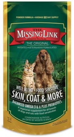 The Missing Link supplements are specially formulated for pets with food sensitivities. Made from whole foods and food concentrates with a combination of omega 3 fatty acids and broad spectrum natural fiber, flax lignans and phyto nutrients, The Missing Link supports the digestive, nervous and immune systems to ensure your furry friend is getting the full benefit of a nutrient rich diet.